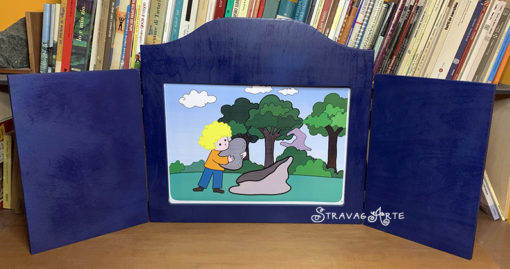 Confezionamento: I teatrini kamishibai di StravagArte vengono spediti in una scatola decorata, elegante e robusta, perfetta anche come confezione regalo.